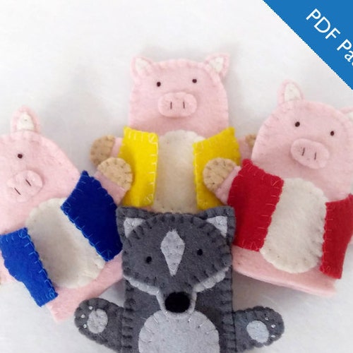Pattern Three Little Pigs And The Big Bad Wolf Felt Finger Etsy